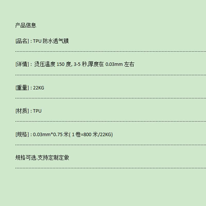 產(chǎn)品名稱:TPU防水透氣膜透明